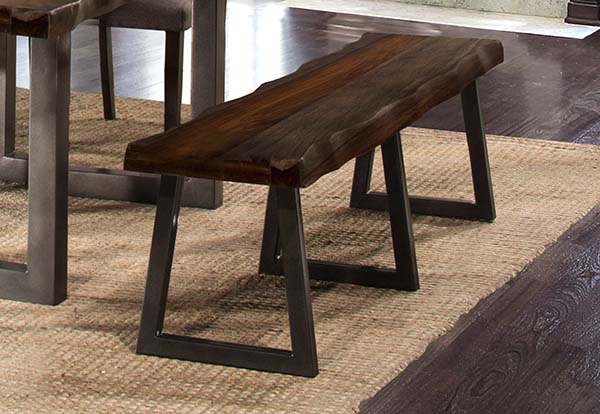 Classic, natural wood construction is the hallmark of the Emerson Gray Sheesham Bench. Constructed of gray sheesham wood, the thick bench lets the hue and character of the grain shine through its clean finish and weathered edges. It is paired with a simple metal base finished in a gray powder coat to ensure the bench is complementary to a variety of dining room décors. Some assembly required.