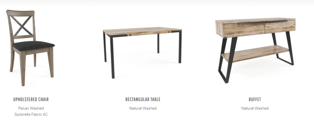 The East Side collection is a mariage of wood and sleek metal with a rustic finish.