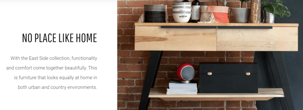 The East Side collection balances the warmth of wood with the coolness of metal.