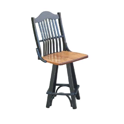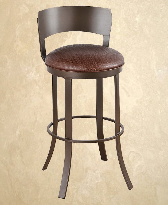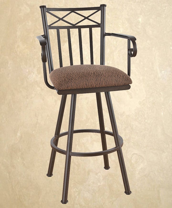 Bar-height stools are 29 to 31 inches from the floor to the top of the seat. Any height in this range will work for a surface that measures 40 inches to 43 inches from the floor to the top of that surface. Don’t forget to measure to the underside of your bar surface if you would like arms on your stool. Some styles will not make arm stools that will fit under the bar and other styles will offer custom arm heights to accommodate any needs you may have. Bar height stools are also available in swivel and non-swivel styles as well as backless versions to fit into tight spaces.