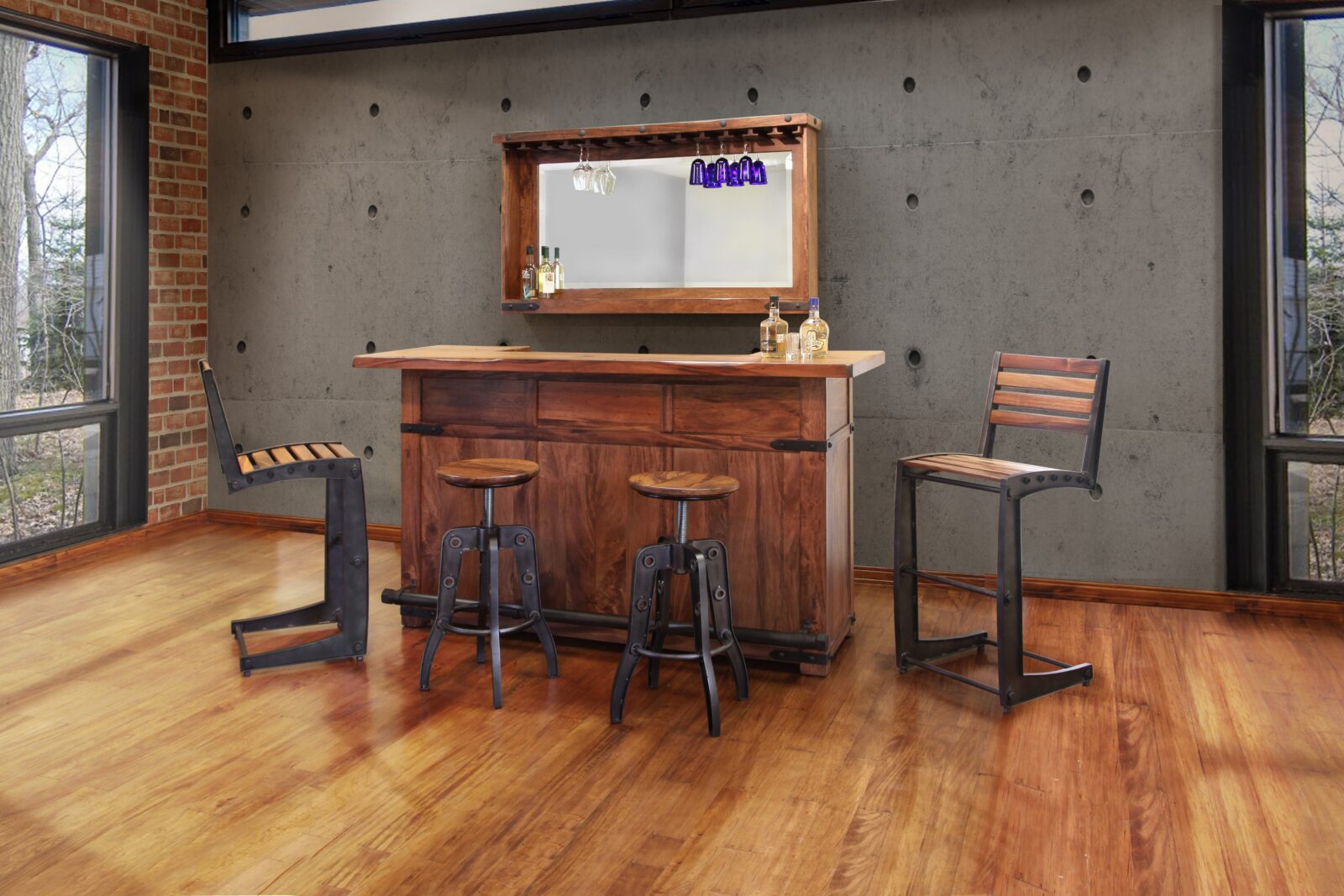 For over thirty four years, we have been providing home bar furniture and home bar design ideas in North Carolina to help our customers furnish spaces for entertaining family friends. Our wide selection of home bar furniture offers several ways for you to complete the look and feel of your home bar. Add seating to your home bar with a new set of stylish bar stools and matching pub tables. Whether you want to display your elegant wine bottles or simply store them, look to our variety of home bar units and home bar cabinets in the Raleigh area.