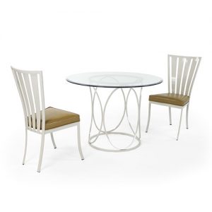 dining space, whether it be large or small. The wired brushed, grey frame is a transitional color that allows you to easily pair this set with your existing decor. The chairs feature a solid, upholstered back and seat with a foam cushion filling. This set will keep you comfortable during even the longest of dinners or game nights.