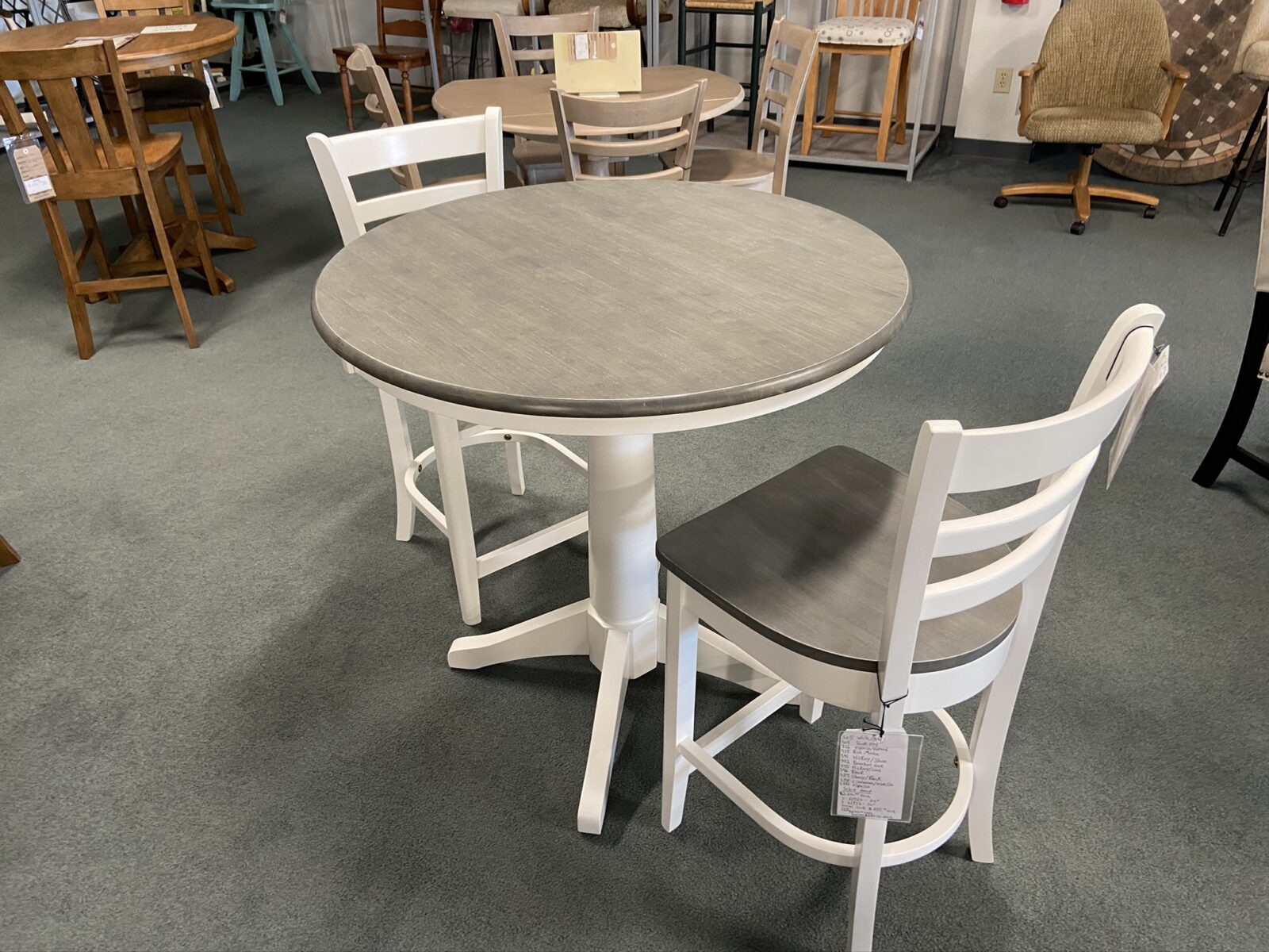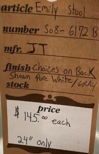 John Thomas Emily Stool is available in the showroom at 24″ height, pure weight and gray for $145/each.